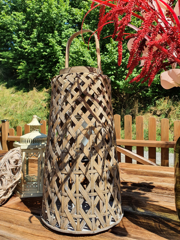 Setzen Sie ein charakteristisches Statement auf Ihrer Hochzeit mit unserer Laterne Korb hoch. Dieses schicke Set aus zwei Stücken auf Lager überzeugt durch seine außergewöhnliche Optik und ist ein garantierter Blickfang. Die Laterne ist sorgfältig aus hochwertigem Korb gefertigt und steht für robuste Eleganz. Sie ist ideal, um ein gemütliches und warmes Ambiente zu schaffen – gleichzeitig dient sie als stilvolle Tischdekoration oder Wegweiser.