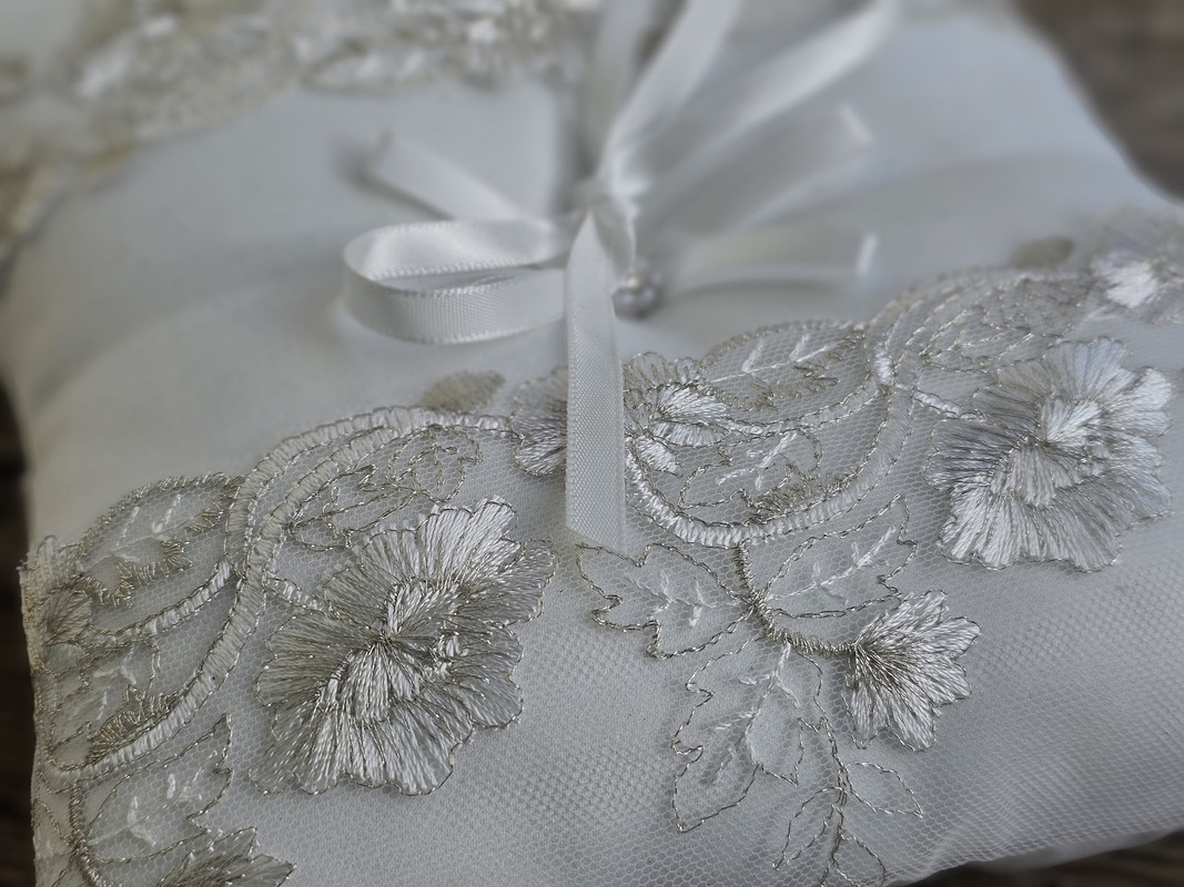 Stellen Sie sich vor, wie wundervoll es sein wird, die Ringe auf diesem atemberaubenden Kissen präsentieren zu können. Ein strahlend weißes Ringkissen kann Ihre besondere Zeremonie nur perfektionieren.